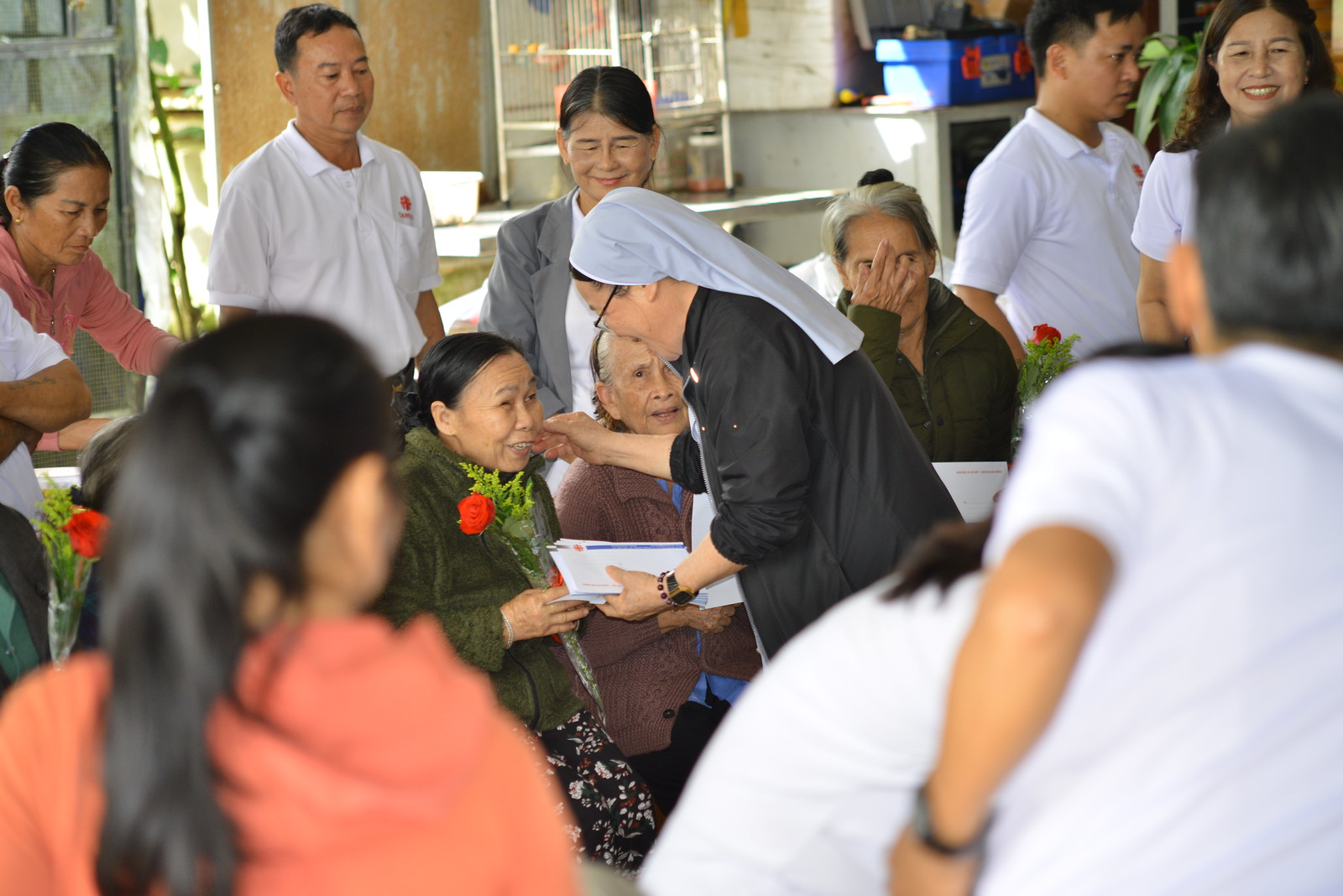 Cha Giám đốc đã ân cần lắng nghe và hứa sẽ tìm cách hỗ trợ. Ngoài những phần quà do Văn phòng Caritas chuẩn bị, cha còn trợ giúp thêm một khoản tiền mặt để các cụ chi dùng khi cần thiết. Nhiều cụ khác như cụ Thôi, cụ Đua (Giáo xứ Tam Thành), cụ Búp (Giáo xứ Tam Kỳ) cũng bày tỏ niềm vui, lòng biết ơn đối với quý cha, giáo xứ và các hội viên tình nguyện.