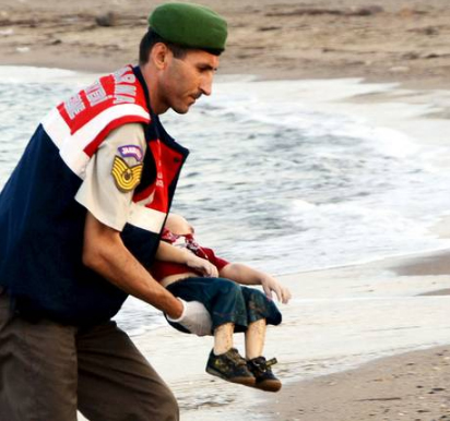 Cậu bé tên là Aylan Kurdi, nằm trong nhóm 23 người di cư đã ra khơi trên 2 con thuyền nhỏ, đi từ bán đảo Bodrum của Thổ Nhĩ Kỳ, với hy vọng sẽ tới đảo Kos của Hy Lạp. Thi thể cậu bé, với mặc chiếc áo phông màu đỏ sáng và quần soóc màu xanh, được phát hiện đang nằm úp mặt trên bãi biển, gần thị trấn nghỉ dưỡng Bodrum, cách thành phố Antalya của Thổ Nhĩ Kỳ hơn 300km. Bé Galip 5 tuổi, anh của Kurdi, cũng thiệt mạng trong chuyến đi này. tị nạn, nhập cư, di dân, châu Âu, khủng hoảng nhập cư