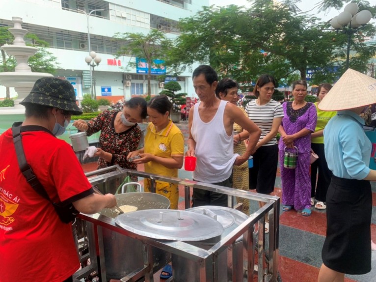 Khởi đầu ngày mừng lễ, các thành viên đã cùng nhau làm quen và nghe chia sẻ về hoạt động của từng Bếp ăn bác ái. Mỗi bếp đều có thời gian thành lập, số buổi phục vụ khác nhau, số lượng thành viên và độ tuổi cũng khác nhau, nhưng tất cả đều có điểm chung là lòng nhiệt thành, hăng say, không quản ngại khó khăn vất vả và tinh thần yêu thương, coi bệnh nhân như những người thân thuộc, ruột thịt của mình. Ước tính 1 năm, số suất cơm-cháo bác ái được trao tới các bệnh nhân khoảng 80 ngàn (chưa bao gồm Bếp cơm Samari), và cùng với thực phẩm, dinh dưỡng là biết bao công khó và sự yêu thương trong đó.