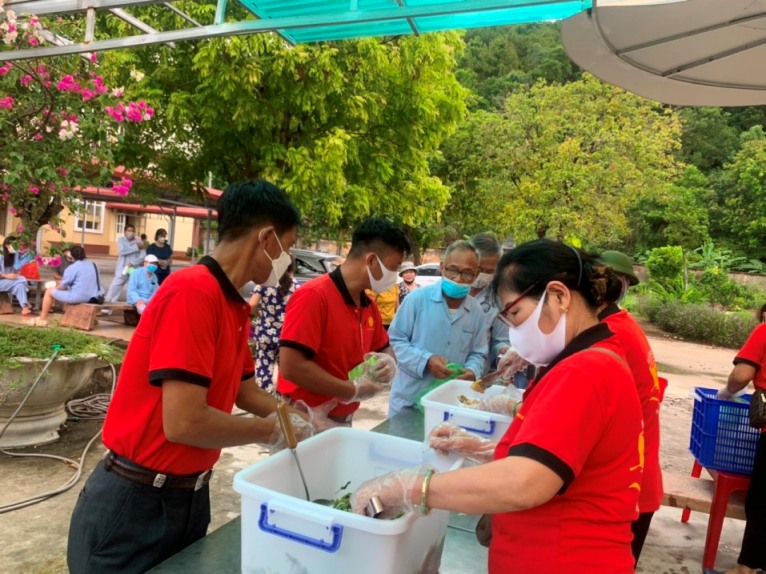 Các thành viên Bếp cơm-cháo bác ái Caritas Hải Phòng mừng Lễ Thánh Mácta Quan thầy