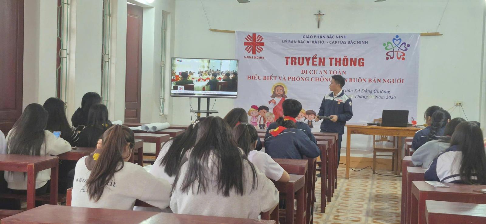 Sáng Chúa Nhật, ngày 02/11/2025, Caritas Bắc Ninh đã tổ chức buổi truyền thông về “Di Cư An Toàn & Phòng Chống Buôn Bán Người” tại 2 giáo xứ Lai Tê và Đồng Chương, có tổng hơn 300 Thiếu Nhi, Huynh Dự Trưởng và Phụ Huynh tham dự.