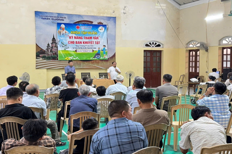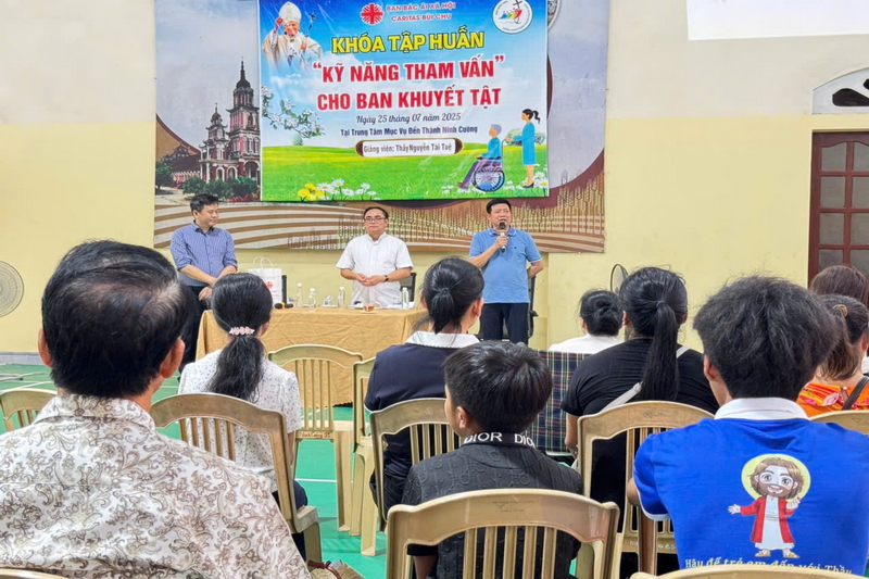 Một ngày hè tháng bảy, trời vẫn nắng chang chang, nhưng tại Trung tâm Mục vụ Đền Thánh Ninh Cường, giáo hạt Ninh Cường, giáo phận Bùi Chu, không khí lại nhẹ nhàng, rộn ràng và đầy yêu thương. Ở nơi ấy, những ánh mắt háo hức, những tiếng chào hỏi thân tình, những nụ cười chân chất hiện diện trong buổi tập huấn kỹ năng tham vấn dành cho Ban Hỗ trợ và Người Khuyết Tật giáo phận Bùi Chu, diễn ra vào sáng thứ Sáu, ngày 25/7/2025.
