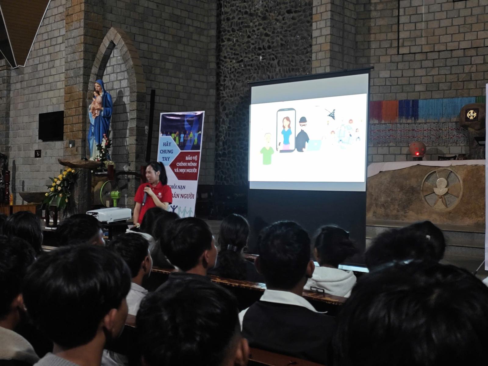 Trong những ngày qua, Caritas Đà Lạt đã thực hiện truyền thông phòng chống nạn buôn người tại Giáo xứ Đạ Tông (khoảng 250 em tham dự) và tại Nhà thờ Mai Anh - Đà Lạt (khoảng 70 em nhỏ).