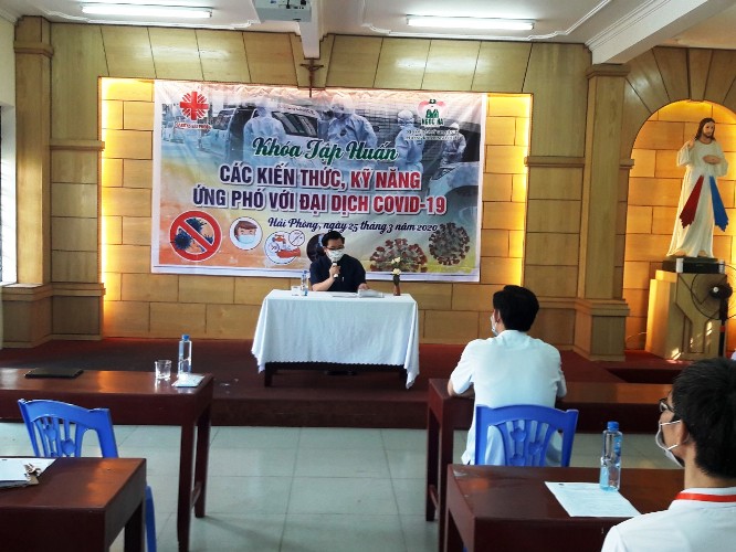 Thứ tư ngày 25/03/2020, tại Hội trường Tòa Giám mục, Văn phòng Caritas Hải Phòng kết hợp với Phòng khám Ngọc Hà tổ chức buổi tập huấn cho hội viên Caritas các kiến thức và kỹ năng ứng phó với đại dịch Covid-19.