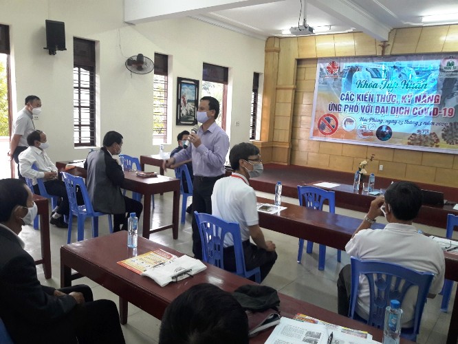 Hiện diện trong buổi tập huấn có cha Giám đốc, cha Phó Giám đốc Caritas Hải Phòng, cha đặc trách Caritas hạt Hòn Gai và Mạo Khê, đại diện Mặt trận Tổ quốc Hải Phòng và các hội viên Caritas của 6 Giáo hạt trong Giáo phận cùng một số sinh viên ngành y. Giảng viên là TS. BS Nguyễn Quang Chính - Giám đốc Trung tâm Truyền thông giáo dục sức khỏe Thành phố Hải Phòng. Điều đặc biệt dễ nhận thấy là tất cả mọi người tham dự khóa tập huấn, từ Quý cha, Quý khách, giảng viên đến các học viên đều mang khẩu trang. Trước đó, phòng hội TGM đã được phun thuốc khử khuẩn, các tham dự viên đều vệ sinh tay bằng dung dịch sát khuẩn và được đo thân nhiệt trước khi vào phòng.