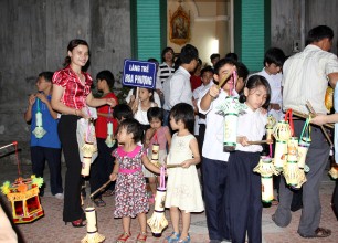 Tới Nhà Thờ Không chỉ được gặp Chúa Giêsu Thánh Thể, gặp Quý Cha, Quý Sơ, các anh chị và các bạn, cùng nhau rước đèn ông sao, các em còn được vui hết mình với các vũ điệu, bài hát, các tiết mục văn nghệ Trung Thu do chính các “nghệ sĩ tí hon” khiếm thính, khiếm thị, bị ảnh hưởng bởi HIV/AIDS… thể hiện rất chuyên nghiệp, theo sự dẫn dắt của 2 MC chú Cuội và chị Hằng.