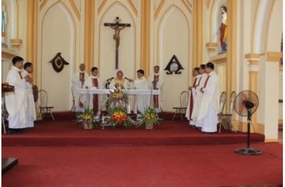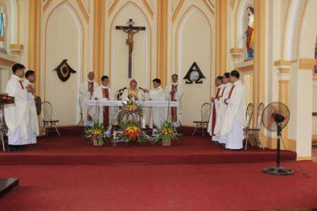 Thánh lễ do Đức Cha Gioan Maria Vũ Tất cử hành và quý Cha đồng tế. Trong thánh lễ, với tư cách là vị chủ chăn tối cao của giáo phận, Đức Cha khơi dậy ý thức bác ái là cốt lõi của đạo Chúa và nhắn nhủ tất cả các Cộng tác viên trong các lĩnh vực tích cực tham gia vào công tác bác ái xã hội, xả thân vì người nghèo cả về phương diện tâm linh lẫn vật chất, theo gương thánh Vinh-sơn Phaolô Quan thầy.