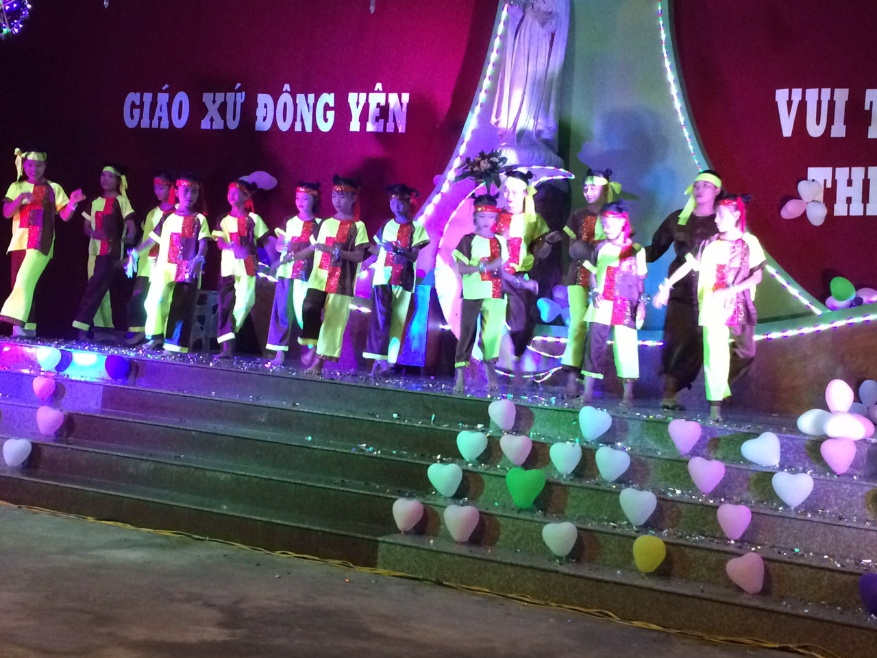 Sau lời khai mở và giới thiệu của Cha xứ là các tiết mục văn nghệ đến từ các em thiếu nhi trong giáo xứ và sự góp mặt của ca sĩ Hoàng Dương đến từ Caritas Thanh Hóa. Tuy chỉ là cây nhà lá vườn nhưng với sự chuẩn bị chu đáo, sự nỗ lực tập luyện và diễn xuất hết khả năng của mình, các em đã mang đến cho đêm hội một bầu khí Trung Thu vui nhộn và đầy ý nghĩa.