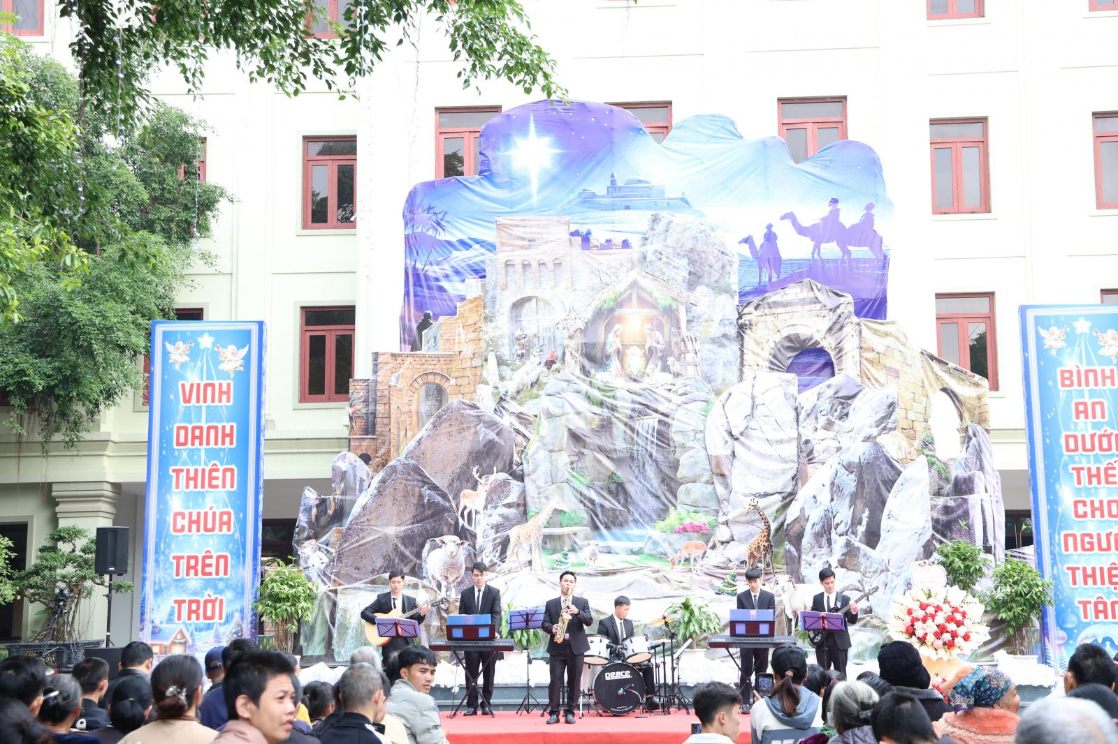 Ngay từ 07 giờ sáng, công tác đón tiếp đã được chuẩn bị chu đáo, thể hiện sự trân trọng và yêu thương dành cho từng người tham dự. Đúng 08 giờ, chương trình chính thức khai mạc với các tiết mục hòa tấu Giáng Sinh rộn ràng của các chú ứng sinh Tiểu Chủng viện thánh Phaolô Lê Bảo Tịnh như Feliz Navidad, Đêm Noel, mở ra một không gian ngập tràn niềm vui, sự gần gũi và hy vọng.