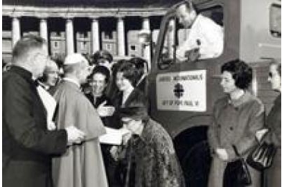 (Bức ảnh này chụp khi ĐGH Phaolo VI chúc lành cho Caritas tại quảng trường thánh Phêrô vào năm trước đó).