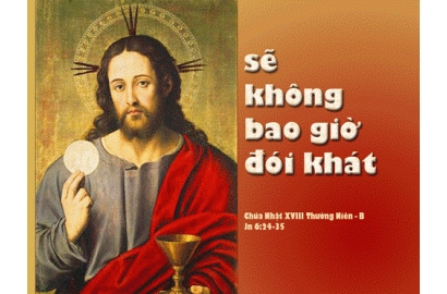 Thế nhưng ta tìm đâu ra những giá trị tuyệt đối để lấp đầy nỗi khao khát vô biên? Ta tìm đâu ra thứ bánh làm dịu được cơn đói hạnh phúc? Hôm nay, Đức Giêsu giới thiệu cho ta thứ bánh đó. Đó là bánh đích thực, vì ăn rồi ta sẽ không bao giờ đói nữa. Đó là bánh ban sự sống, ai ăn sẽ không chết nữa. Đó là bánh ban hạnh phúc, ăn vào sẽ không còn khao khát điều gì khác. Đó là bánh Thiên Chúa ban chứ loài người không ban được. Đó là bánh từ trời chứ trần gian không sản xuất được. Tấm bánh đó là chính bản thân Người, Đức Giêsu Kitô.
