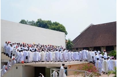 Hôm nay ngày 7.3.2013, trong bầu khí hân hoan vui mừng, khoảng 600 anh em Linh mục thuộc 9 khóa gần nhất đã được thụ huấn tại ĐCV Thánh Giuse Sài gòn trở về mái trường thân yêu, hòa chung niềm vui gặp gỡ và cùng hiệp thông tâm tình tri ân trong Thánh Lễ Tạ Ơn.