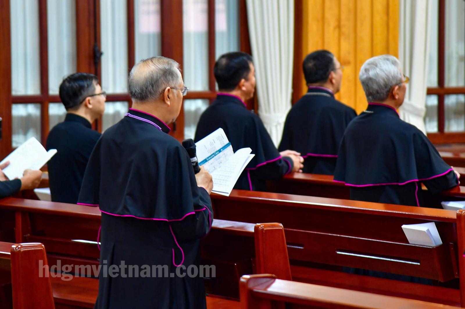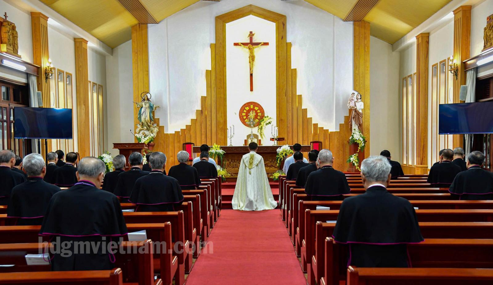 Cuối ngày làm việc, Đức Tổng Giám mục Marek Zalewski đã chủ sự Chầu Thánh Thể trước khi cùng HĐGM cử hành Phụng vụ Kinh Chiều.