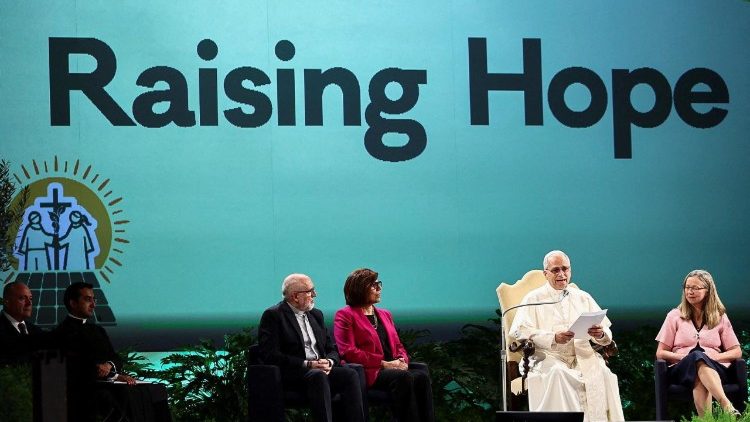 Kết thúc bài diễn văn, Đức Thánh Cha đặt câu hỏi thách thức lương tâm: “Thiên Chúa sẽ hỏi chúng ta có chăm sóc ngôi nhà chung này và anh chị em mình hay không. Vậy chúng ta sẽ trả lời thế nào?”. Đức Thánh Cha cám ơn sự dấn thân của mọi người và ban phép lành cho các tham dự viên.