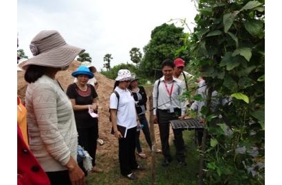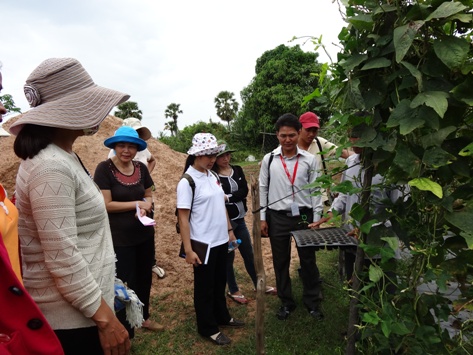 Sau một chặng đường khá dài, ai cũng cảm thấy mệt nhoài và trở về phòng nghỉ. Ngày hôm sau 27/09, đoàn chúng tôi được đến giao lưu và học hỏi những mô hình phát triển nông nghiệp của Caritas Campuchia. Mọi người ai cũng vui và nao nức về những kiến thức chúng tôi đã được chia sẻ và học hỏi qua những cách thức chế tạo thuốc trừ sâu tự nhiên và cách làm phân compost và cách trồng lúa SRI sử dụng hoàn toàn phân hữu cơ thân thiện với môi trường của những người dân Campuchia. Trưa ngày hôm đó, đoàn chúng tôi được cùng ăn cơm với các nhân viên Caritas của Campuchia và những người nông dân ở nơi đó. Bữa cơm tuy thanh đạm nhưng đã để lại trong tôi một ấn tượng sâu sắc khó quên qua sự tiếp đón niềm nở, ân cần của người dân.