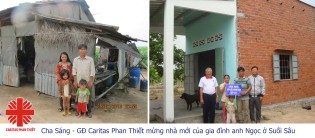 Mừng Giáng Sinh và Năm Mới 2014, trong tháng 12/2013, Caritas Phan Thiết đã trao 10 nhà tình thương cho các gia đình nghèo tại các xã: Hàm Thắng, Sùng Nhơn, Đakai và Suối Sâu. Niềm vui rạng ngời trên mặt của người già, trẻ nhỏ trong các gia đình.Ước mơ của họ có được một mái nhà đúng nghĩa sau nhiều năm nay đã thành hiện thực.