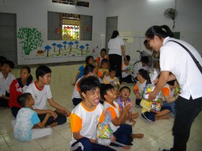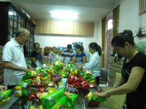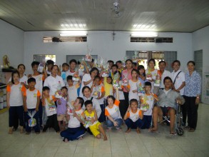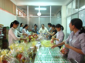 Chương trình trao quà Trung Thu cho các em thiếu nhi vùng xa và các em có hoàn cảnh đặc biệt được Văn phòng Caritas TGP Thành phố Hồ Chí Minh tổ chức thực hiện từ ngày 16 /9 đến ngày 18/9/2013 trên địa bàn Tổng giáo phận, với 3000 phần quà dành cho thiếu nhi tại một số giáo xứ, giáo điểm vùng sâu, vùng xa , cơ sở Khuyết tật, Lớp Tình thương và Mái ấm … . Để những gói quà nho nhỏ, xinh xinh được thuyên chuyển đến cho các em với tất cả sự yêu thương và chia sẻ, trước ngày diễn ra hoạt động trao quà, Văn phòng Caritas tấp nập các anh chị liên kết viên, quý sơ, các anh chị em ca đoàn của Giáo xứ Xóm Thuốc đã dành rất nhiều thời gian tạo nên những phần quà dễ thương và vô cùng xinh đẹp dành cho các em.