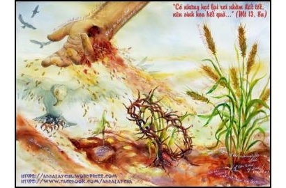 Tin Mừng hôm nay có tên gọi là “Dụ ngôn người gieo giống”. Thiên Chúa là người gieo giống. Chúng ta là đất. Hạt giống là lời giảng dạy của Chúa Giêsu. Tùy vào thái độ của mỗi người, chân thành đón nhận hay lười biếng khước từ, Lời Chúa sẽ sinh những hiệu quả khác nhau. Hạt giống được gieo trên bốn loại đất, đất vệ đường, đất lẫn sỏi đá, đất có nhiều gai góc, và đất tốt. Đất nào cho năng suất nấy. Làm sao bên lề đường khô cằn sỏi đá, hạt giống có thể sinh hoa kết trái được? Trong bụi gai chằng chịt cỏ rác không mọc nổi, hạt giống làm sao vươn lên để thành cây xanh tốt được?