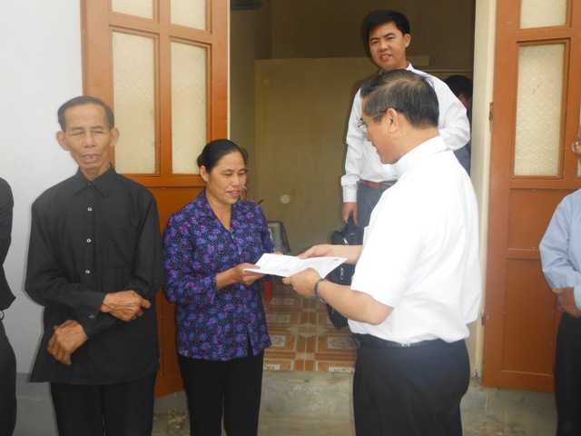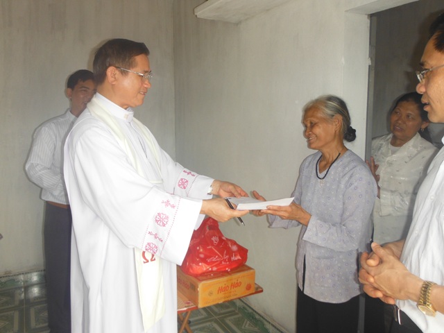 Trước tình cảnh ấy, Caritas Việt Nam đã hỗ trợ xây lại nhà cho các gia đình này. Đại diện Caritas Việt Nam, Đức Giám mục phó Chủ tịch Tôma Vũ Đình Hiệu cùng Linh mục Giuse Trần Hưng Đạo - Giám đốc Caritas Bùi Chu, linh mục Giuse Mai Xuân Thanh - Phó Giám đốc Caritas Bùi Chu đến trao nhà và quyền sử dụng cho hai gia đình trước sự hiện diện của Cha xứ, ban Hành giáo và ban Caritas giáo xứ.