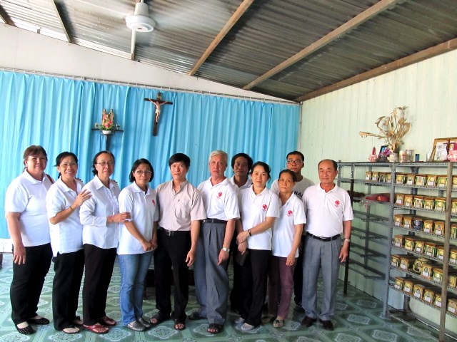 Chụp hình cùng Cha Đinh Trần Thanh Tú và hũ cốt các bệnh nhân HIV qua đời