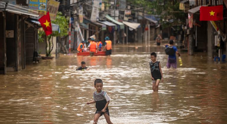 © UNICEF/Phạm Hà Duy Linh - Trẻ em chơi đùa trong khu phố gần Sông Hồng, khu vực bị ngập lụt sau cơn bão Yagi vào tháng 9 năm 2024, tại Hà Nội, Việt Nam.